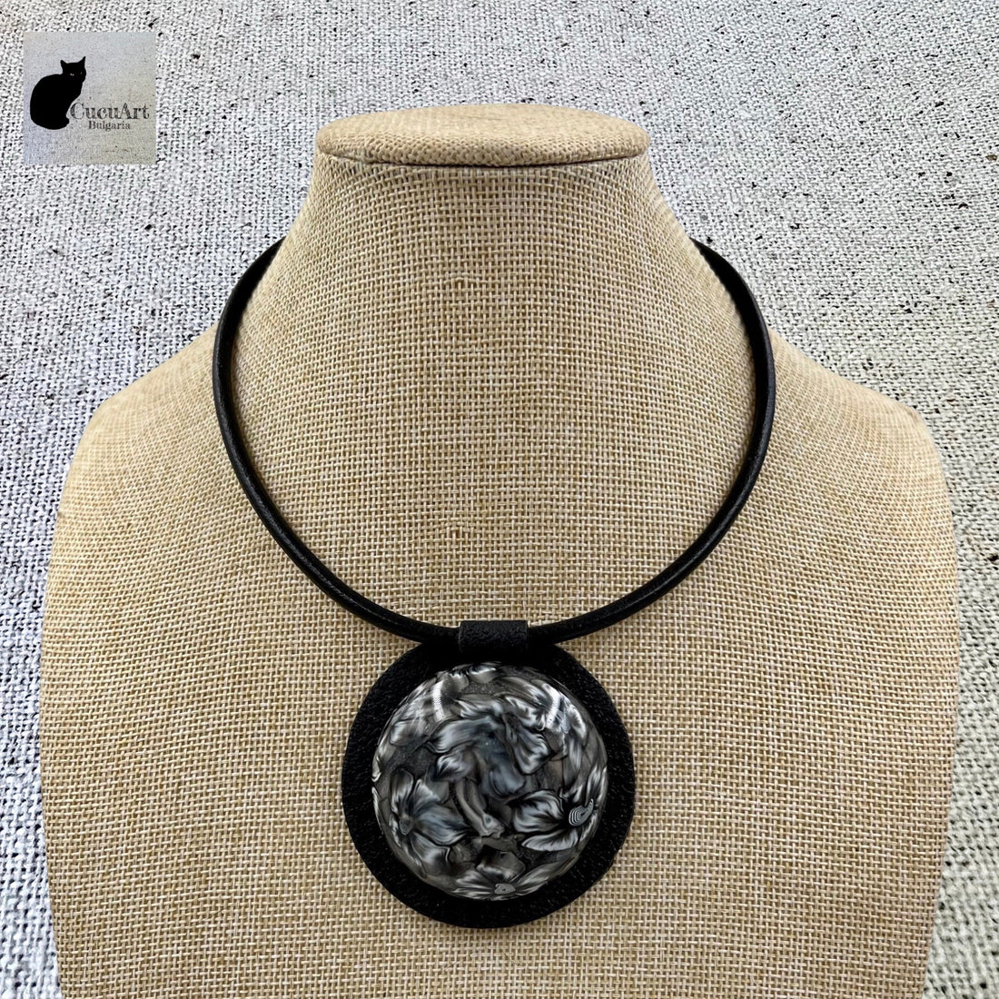 Colgante con cordón de cuero hecho a mano con arcilla polimérica. Diseño Exclusivo de CucuArt